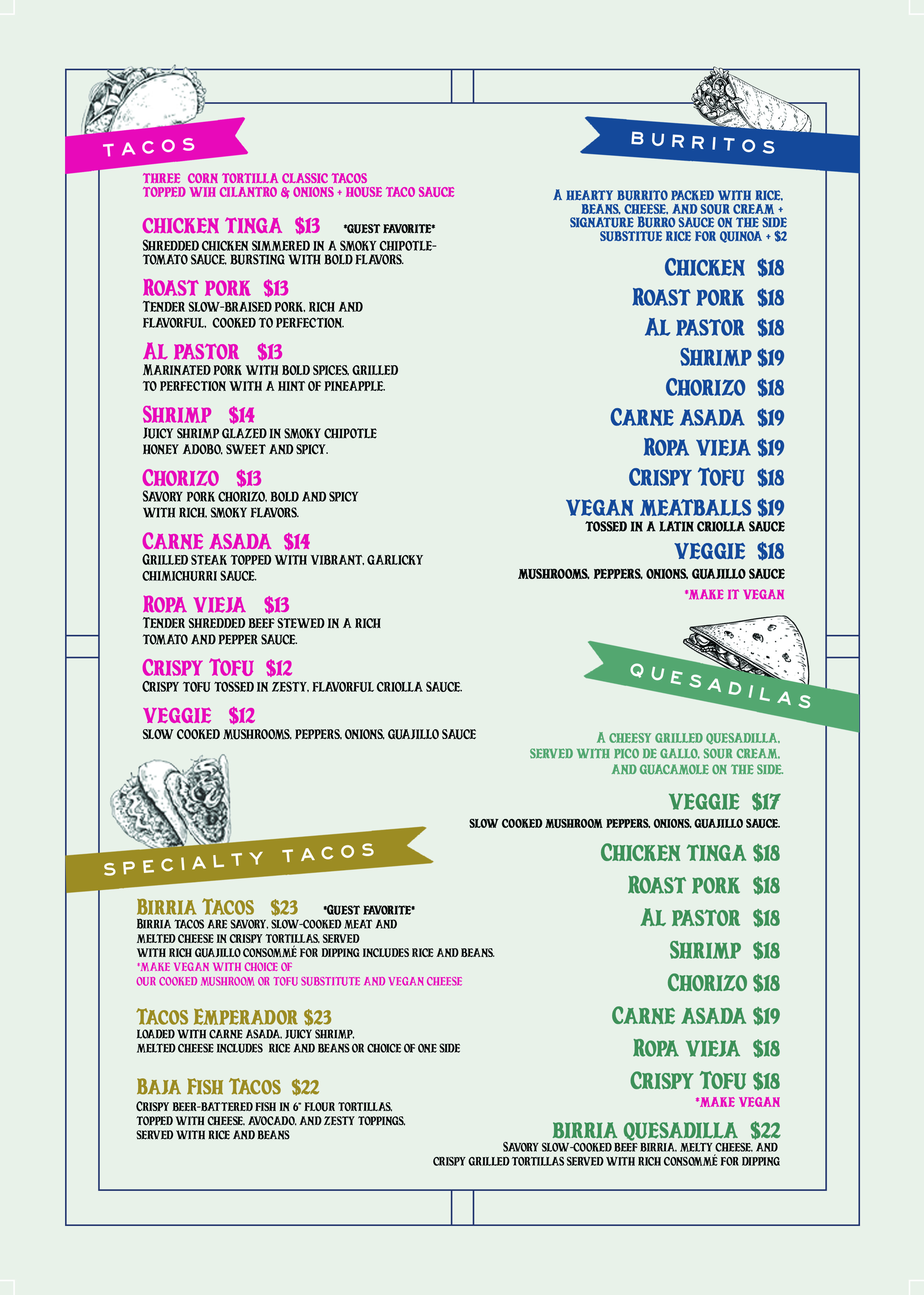 Chicken Flautas – Half $75 | Full $130